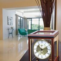 Mehanički stolni sat s kućištem od masivnog drveta i stakla.Westminster 4/4 melodija svaka četvrt sata i otkucavanje punog sata. Mehanizam ''Hermle'' Njemačka sa pogonom na ključ (8 dana).Boje:22998-160352 Cherrywood22998-030352 Walnut finish