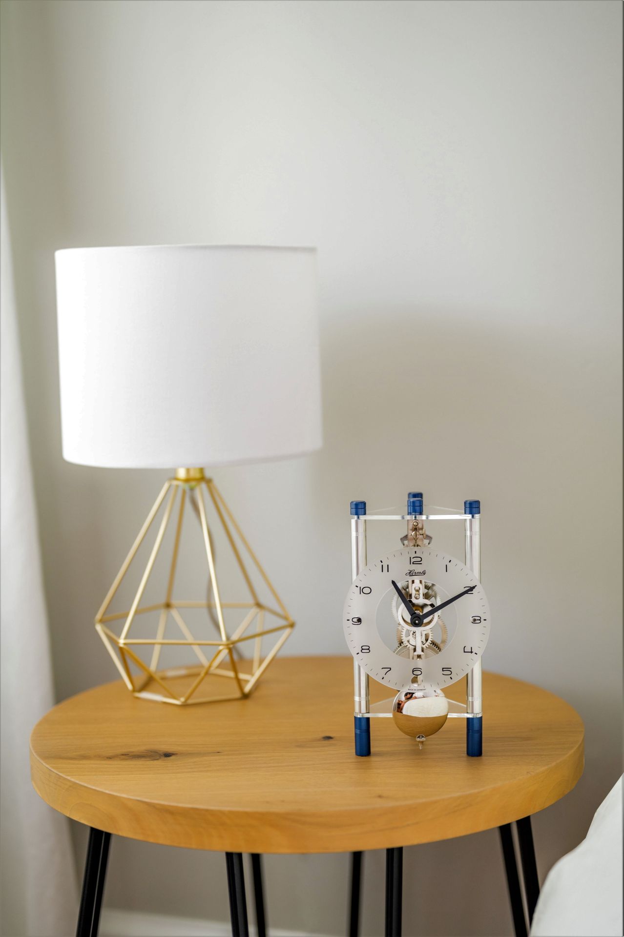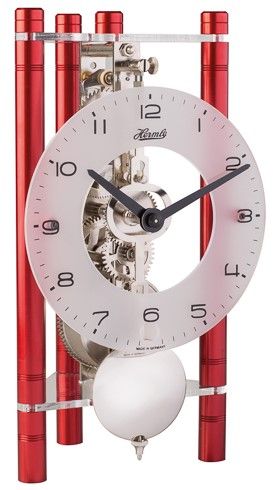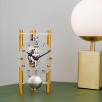 Mehanički stolni sat purističkog dizajna s eloksiranim aluminijskim stupićima i mehaničkim 8-dnevnim skelet mehanizmom u različitim bojama.Boje:23025-500721 Gold23025-Q70721 Blue23025-360721 Red23025-T50721 Silver Blue23025-X40721 Silver
