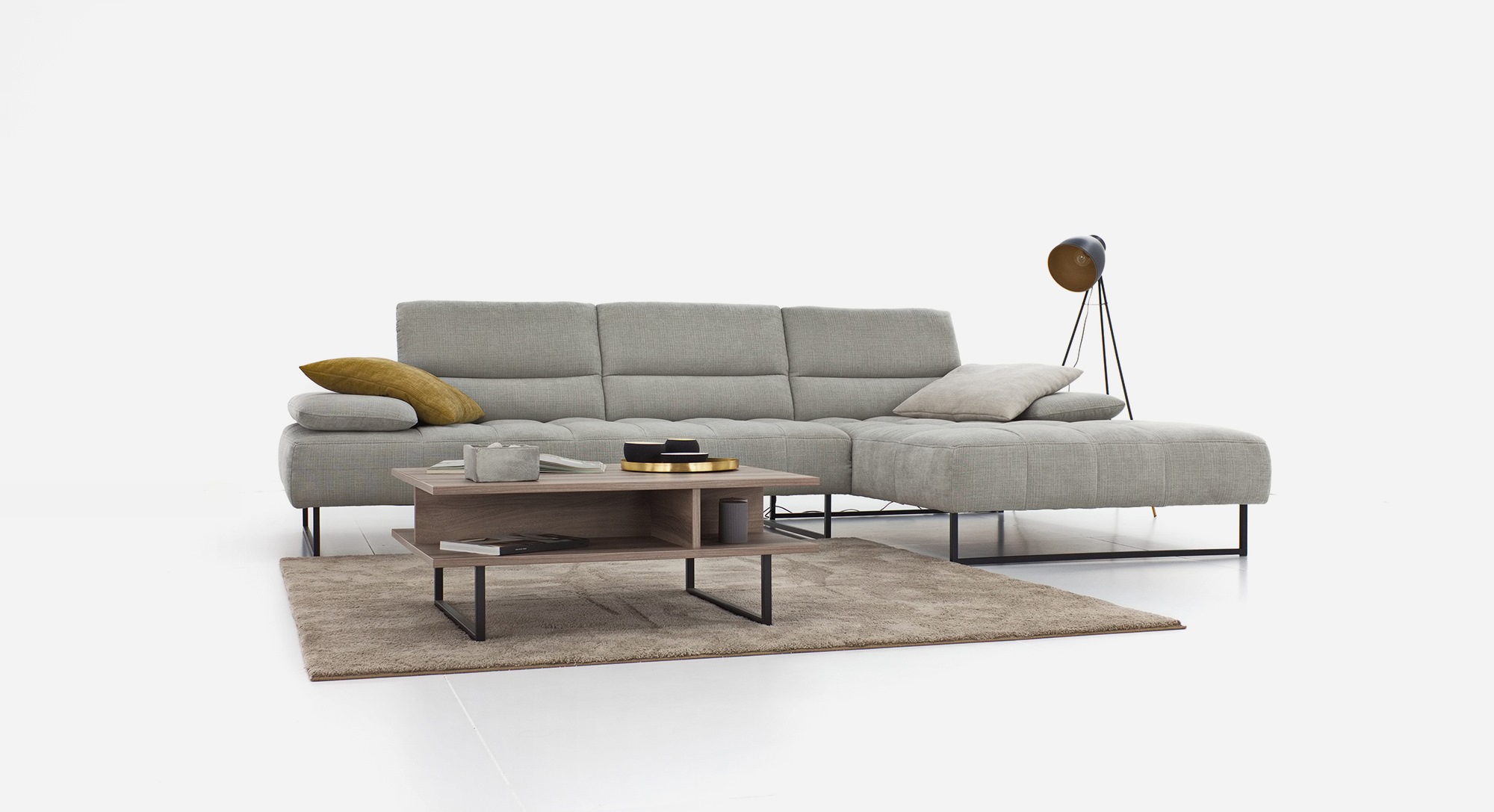 SOFO COSMO je zaista nešto posebno. Ne izgleda masivno, već vrlo skladno u svojim proporcijamaDostupan je širok raspon elemenata (S, M, L, XL), koje možete slobodno sastaviti u garnituru po svojoj želji. Integrirani mehanizam za podizanje omogućuje postupno podizanje naslona za glavu.
