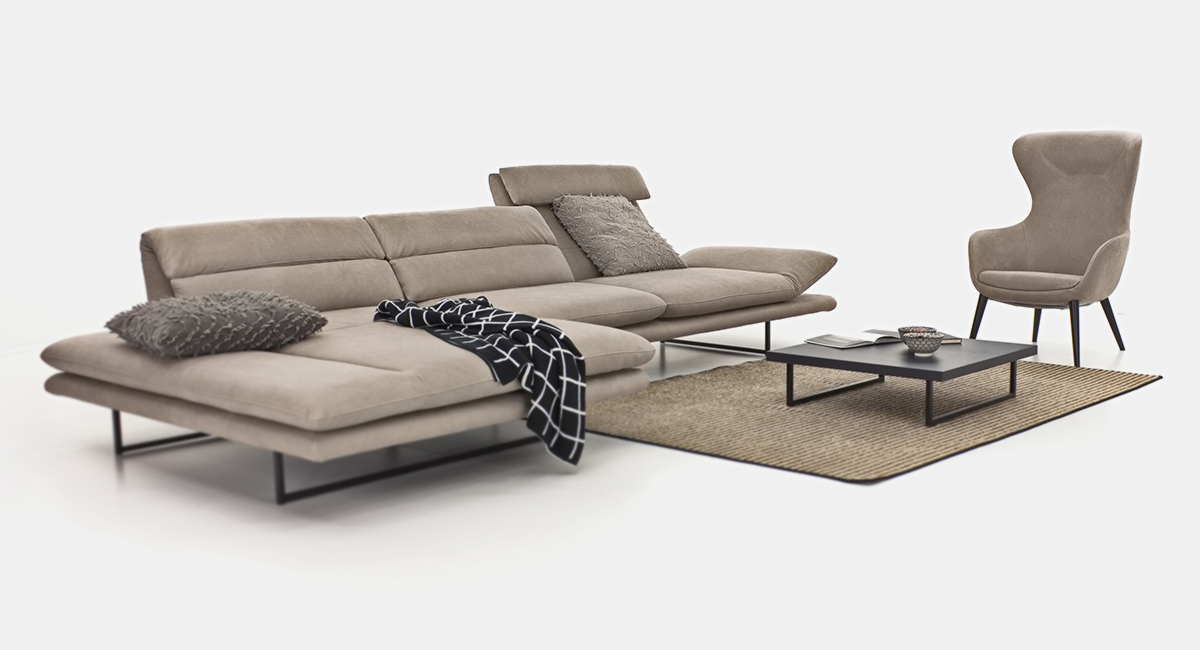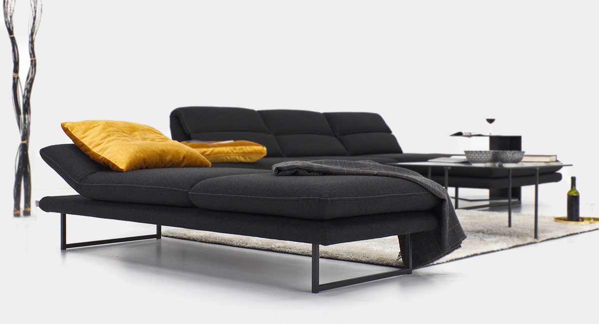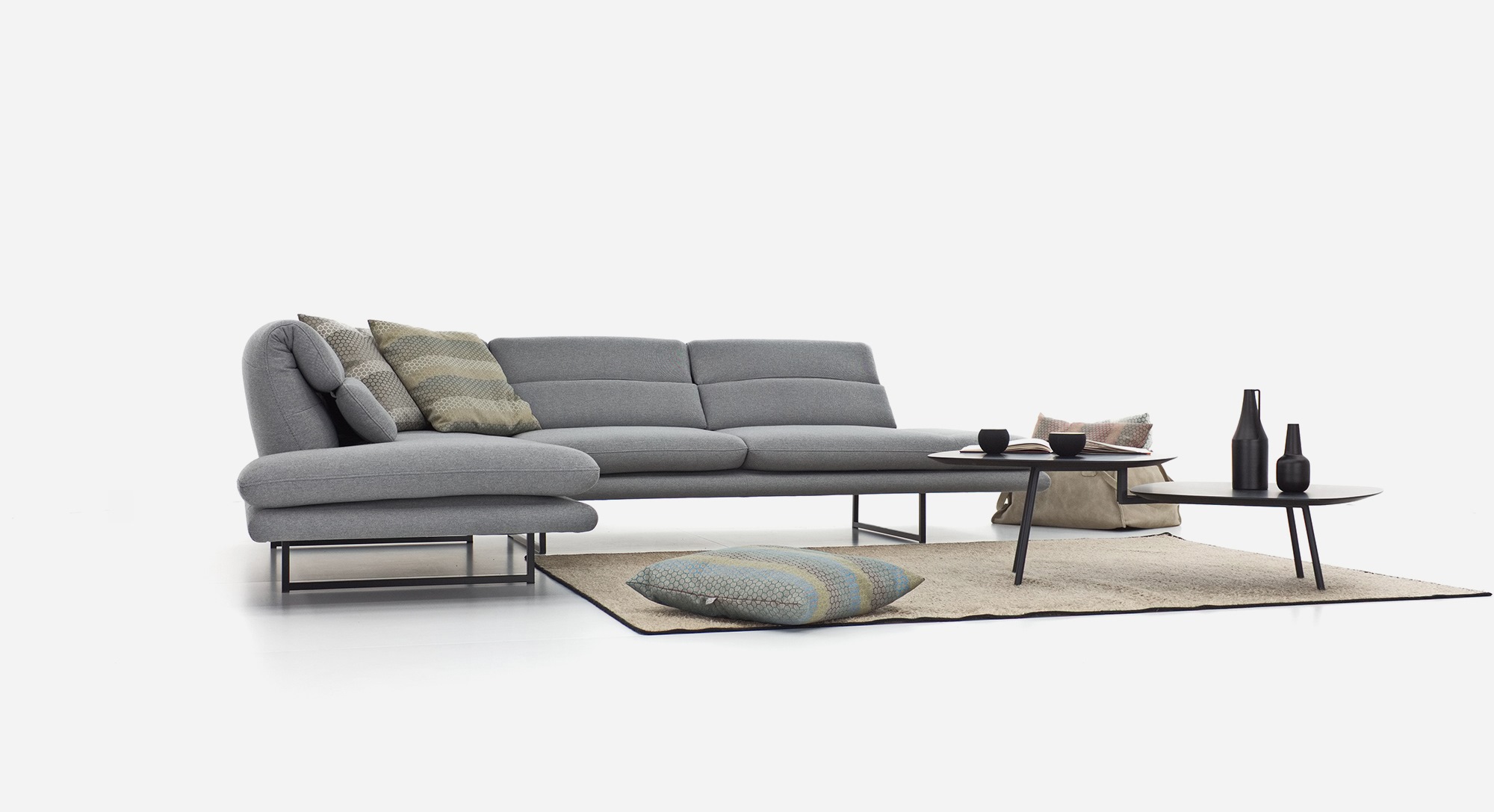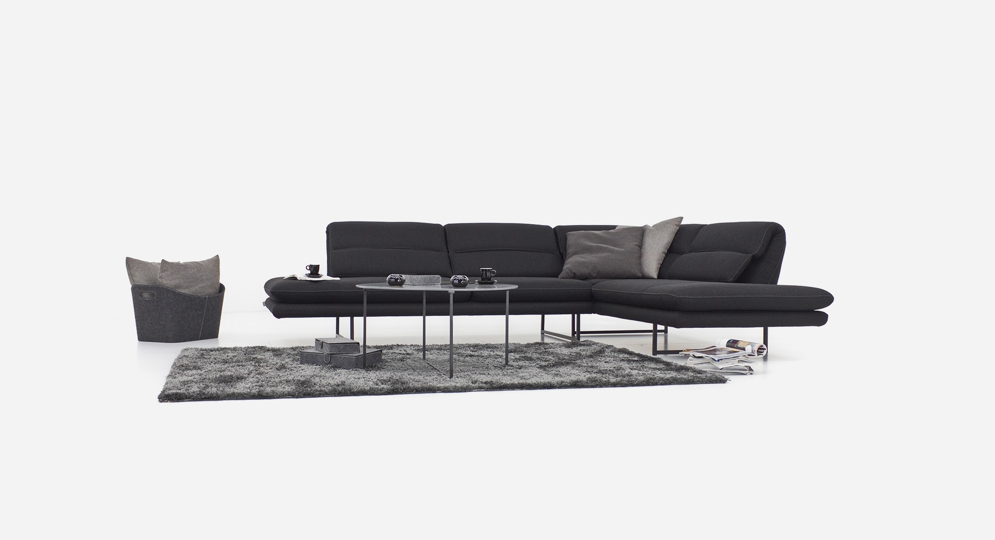 SOFO VOLO, sa svojim izuzetno tankim sjedalom i naslonima za ruke, predstavlja se kao suptilan i elegantan model s minimalističkim dizajnom. Posebnost naslona za ruke je mogućnost postupnog podešavanja kuta naslona i korištenja u željenom položaju kao naslon za glavu. Širok raspon elemenata dostupan je u četiri dimenzije (XS, S, M, L, XL). Kupac može slobodno birati i kombinirati različite elemente zajedno.
